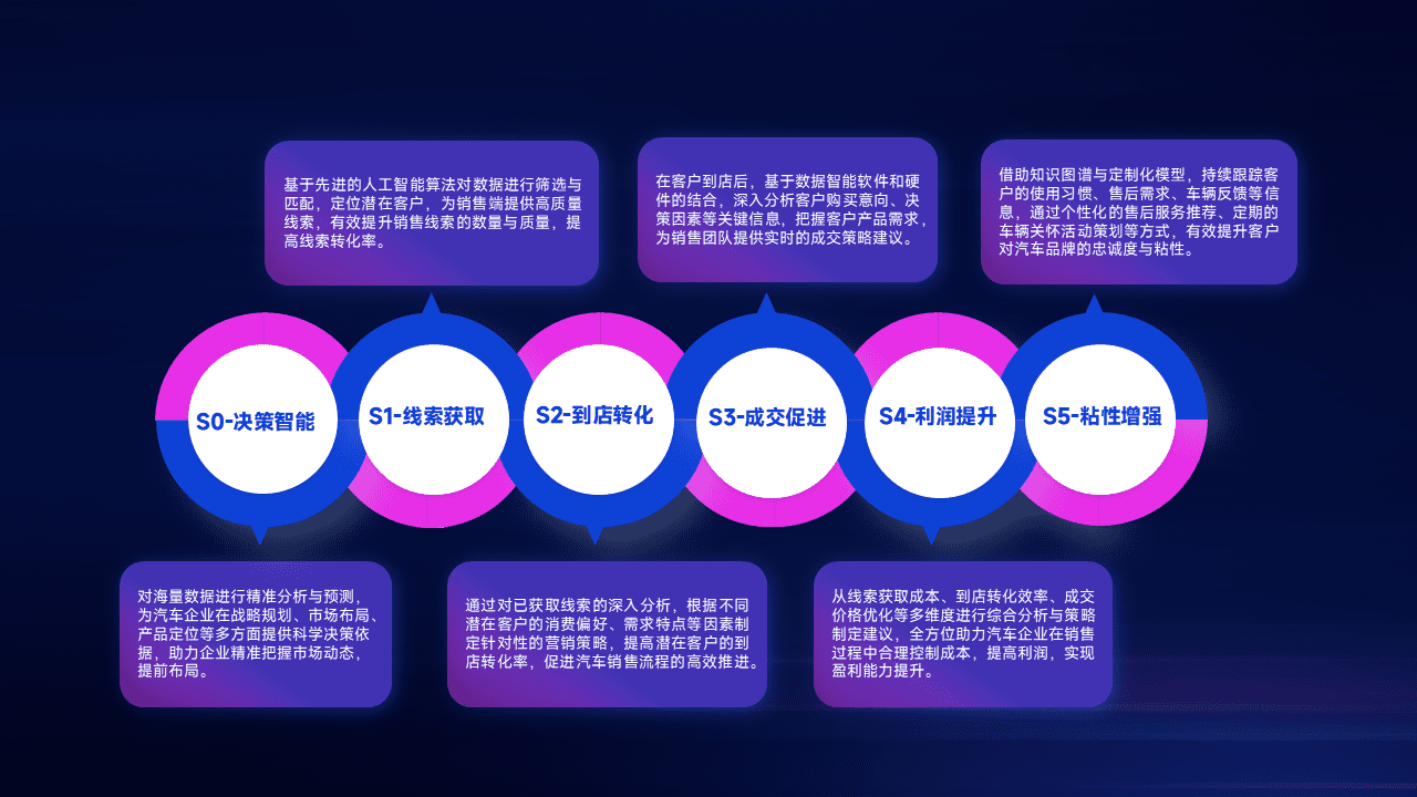 通过拓宽潜在客户来源、、优化线索分配并提高到店转化率,,,,以增强销售效率。。同时,,,利用线索数据不断优化分析模型,,,有效提升转化率,,,扩大营销影响力。。。